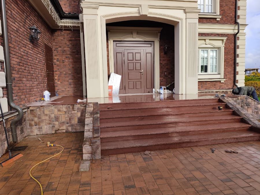 Поскольку поверхность не впитывает влагу, на ней не накапливаются загрязнения. Это позволяет быстро очищать крыльцо от пыли и без лишних трудозатрат поддерживать его в идеальном состоянии.