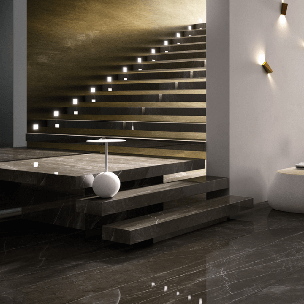 Керамогранит – это отличный материал для ступеней лестницы на улице. Он обладает высокой прочностью, поэтому может использоваться на лестницах в общественных зонах. Верхняя часть плит имеет рыхлую поверхность, которая обеспечивает лучшее сцепление с обувью.