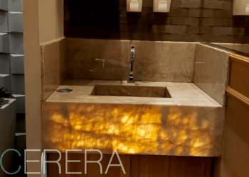 Материал легко сверлится алмазными коронками под установку любой сантехники. Мастер закругляет торцы и делает фигурную фрезеровку для придания изысканности выбранному интерьеру. Часто встречаются оригинальные сочетания контрастных оттенков для создания интересных дизайнов.