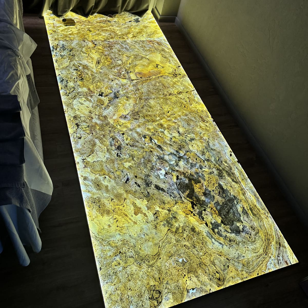 Мы разрабатываем и производим ультратонкие световые панели специально для задач, где обычные LED-ленты и стандартные световые панели не справляются с равномерностью, яркостью и эстетикой свечения камня.